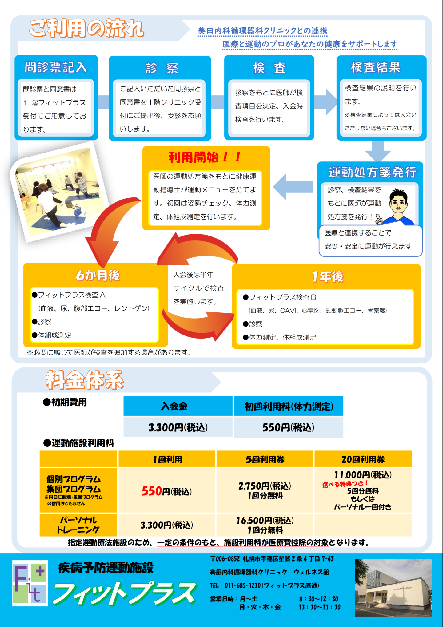 生活習慣病の予防・改善のため、平成17年11月より始まりました当院運動教室。たくさんの方々にご愛顧頂いた運動教室は、疾病予防運動施設FitPlus(フィットプラス)として生まれ変わりました。